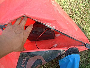 中にモーターとファンを設置し、常に空気を送っている状態にして膨らませている。