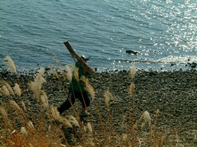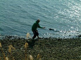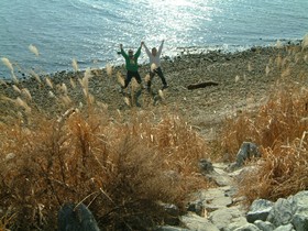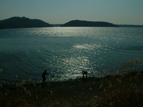 湖の畔まで行ってしまった(汗)りとおおはしゃぎ→