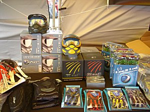 ![]() ゴーグルやグローブも最新モデルが並んでいます。 |