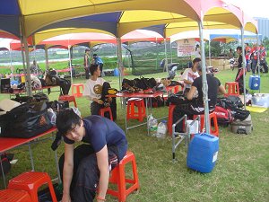 ![]() 1チーム1つのテントが与えられます。 |