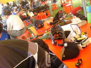 ![]() 大会本部・ジャッジスタッフ、スコア表など、 約100人のスタッフを収納しています。 |