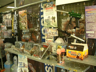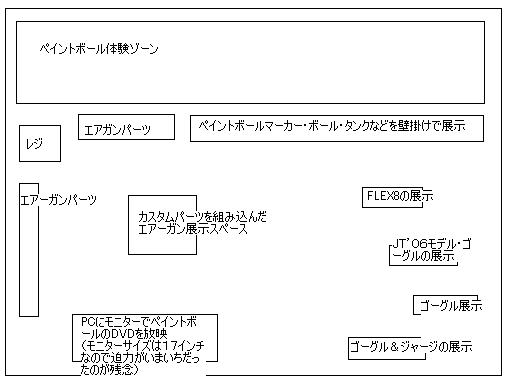 ブースの右半分がペイントボールとなっており、什器のメインはゴーグル」でした。