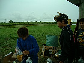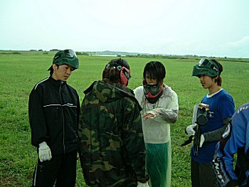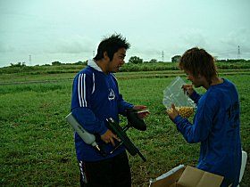あいにくの天候にも関わらず、女性を含めた4名の体験者も参加していただけました。 フィールドも新規フィールドになり、端の下の雨が降らない場所でのプレーとなりました。