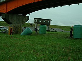 ゲーム風景 かんちゃんが隠れてるバンカーがしぼんでる(汗)