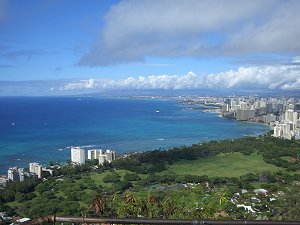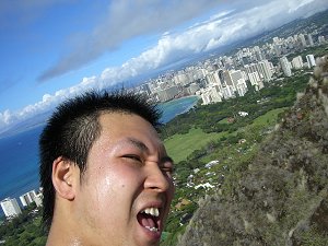 イルカと一緒に泳ぐツアーが天候のため中止になり、急遽ダイヤモンドヘッドなる岩に登ることになった。