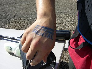 ![]() レンタルの人は手にレンタルのスタンプを押されます。 |