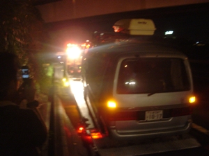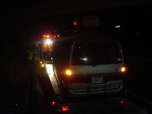 | そして運命の | レッカーへ | 高速道路の路肩にて |