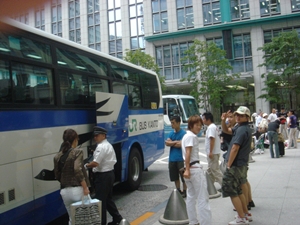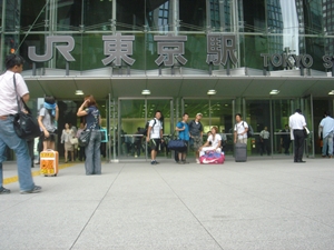 そして、サラリーマンが行きかう 月曜日の朝8;00すぎ、 東京駅に到着。 田舎もんの自分達は高層ビルと人だかりに驚きを隠せず。 |
